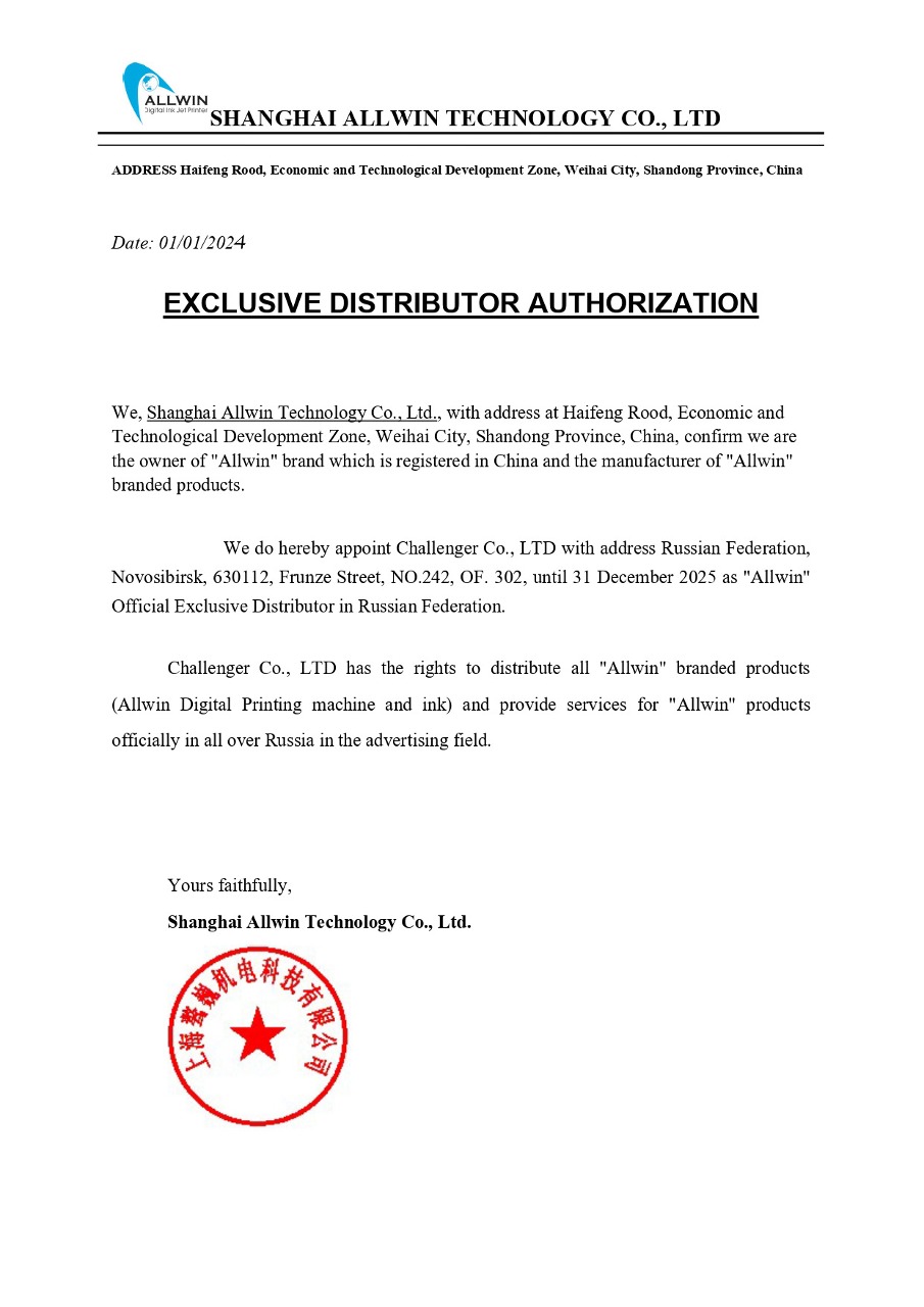 Наша компания представляет продукцию ведущих китайских производителей печатного оборудования — заводов Allwin и Phaeton, являясь их эксклюзивным дилером. Статус официального представителя предоставляет нам уникальные возможности: